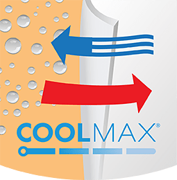 La tecnología Coolmax® fue desarrollada originalmente para atletas. El material transporta la humedad y el sudor, para que el cuerpo se mantenga seco. También lo encontramos extremadamente adecuado para las personas que trabajan duro durante horas todos los días.