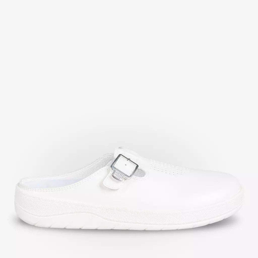 Otra característica destacada de estos zuecos es la punta redondeada, que proporciona suficiente espacio para los dedos y evita la presión en los puntos sensibles del pie. Además, el diseño sin cordones permite un fácil deslizamiento y sujeción segura, lo que los hace ideales para profesionales que necesitan calzado fácil de usar en el trabajo.
